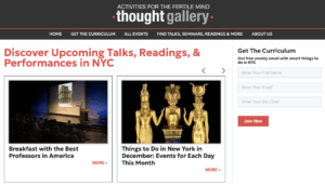 New, good ideas thrive when they reveal and meet previously unrecognized needs. This is the case of a website created in 2004 by David Miller, CEO of Davler Media Group, who came up with a brilliant name — Thought Gallery — (thoughtgallery.org) and the ambitious objective of creating a site dedicated to NYC’s intellectual life. Rather than searching social media, the cultural calendars of dailies and magazines, or subscribing to the myriad cultural associations, museums, and institutes that offer public programming, Thought Gallery serves as a one-stop curated list of intelligent events, accessible for free via a weekly newsletter (The Curriculum).