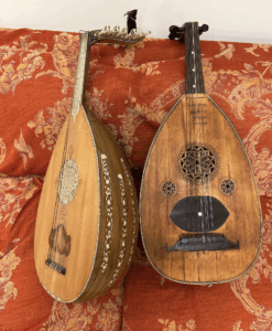 One such treasure is a pair of beautiful ouds. The oud is a short-necked, fretless string instrument with a pear shape. It is similar to a lute; in fact, the Western lute derives from the Medieval Islamic oud. These gorgeous instruments evoke the common origin of much of Sephardic, Arabic, Ottoman, and Persian musical traditions, reminding us of music’s place in those societies. Our ouds are more than decor; one is already playable, and we plan to restore the second. Stay tuned for upcoming in-house concerts.