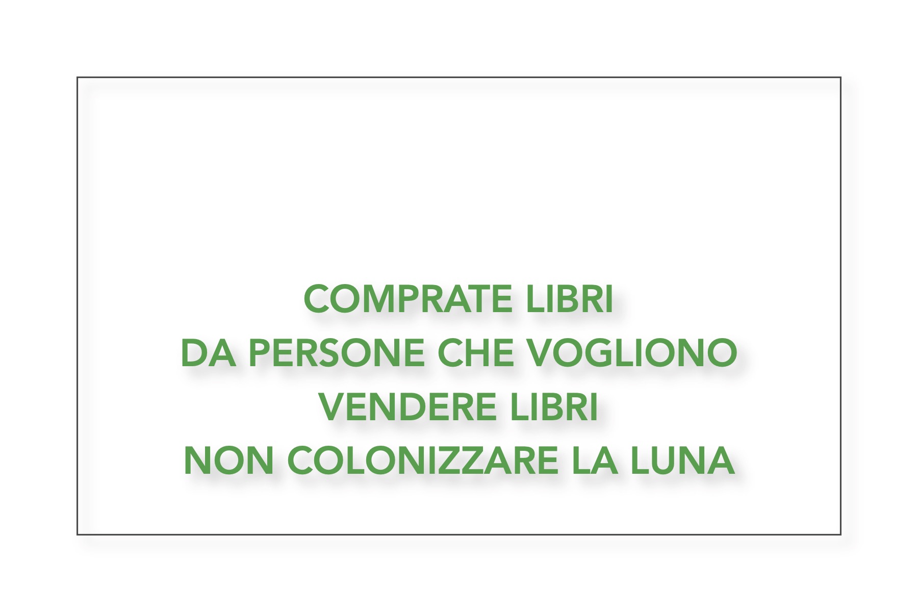 Which translates as: Buy books from people who want to sell books, not colonize the moon.